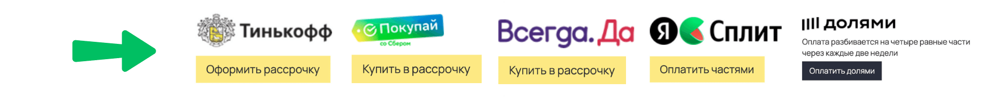 Чтобы оформить рассрочку или оплату частями, выберите соответствующий вариант